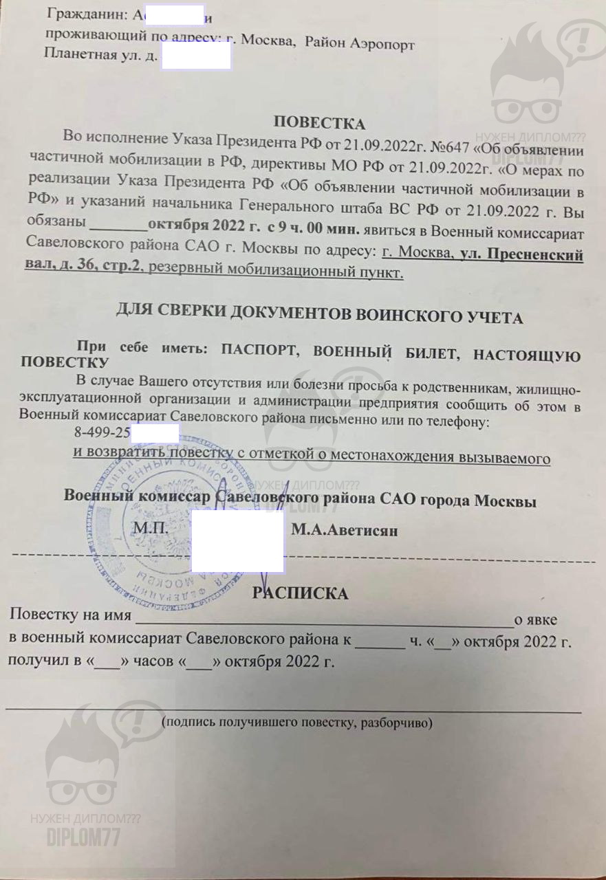 Вопрос: Добрый день! Подскажите, пожалуйста, есть ли возможность сделать повестку в военкомат Невского района с печатью задним числом? На 24.10.2022 на 10:00?